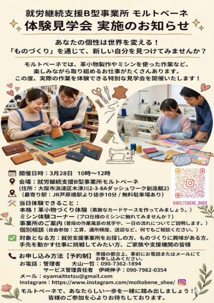 【お知らせ】就労継続支援B型事業所モルトベーネ 体験見学会のお知らせ
